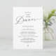 Mark the beginning of your forever with elegance using our contemporary black and white theme wedding elopement Reception celebration invitation card, "Happily Ever After Dinner". Perfect for couples extending their joyous occasion, this invitation exudes sophistication with a hint of playfulness, setting the stage for a memorable event. Adorned with a timeless modern script design theme, it adds a touch of refined charm to your festivities. Crafted by TeeshaDerrick, this invitation promises to beautifully capture your love story.