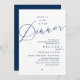 Announce and share your romantic wedding happily ever after in style with our modern navy blue theme design "Happily ever after dinner" wedding elopement celebration invitation card. It is ideal for couples who have decided to celebrate their best day. With its sophisticated yet playful design, this invitation is sure to set the tone for an unforgettable event. The invitation card features a modern and minimalist script design theme, adding a touch of timeless elegance to your celebration. Designed by TeeshaDerrick