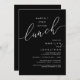 Mark the beginning of your forever with elegance using our romantic contemporary black and white theme, wedding elopement celebration invitation card, "Happily Ever After Lunch". Perfect for couples extending their joyous occasion, this invitation exudes sophistication with a hint of playfulness, setting the stage for a memorable event. Adorned with a timeless modern script design theme, it adds a touch of refined charm to your festivities. Crafted by TeeshaDerrick, this invitation promises to beautifully capture your love story.