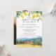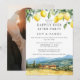 This elegant happily ever after party wedding invitation, featuring watercolor lemons and a tuscan scene can be personalized with your information in chic typography and special photo on the reverse. Designed by Thisisnotme©