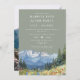 This elegant happily ever after party watercolor mountain floral elopement wedding invitation can be personalized with your information in chic typography on a sage green background and a special photo on the reverse. Designed by Thisisnotme©
