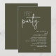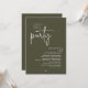 Announce your happily ever after in style with our modern minimalist casual script design wedding reception elopement dinner celebration invitation card in olive green theme. Our "Happily Ever After Party" Invitation card is ideal for couples who have decided to elope and want to host a party to celebrate their union. With its sophisticated yet playful design, this invitation is sure to set the tone for an unforgettable event. The invitation card features a minimalist design with a black and white scheme, adding a touch of timeless elegance to your celebration.