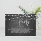 Woth joyius hearts, announce and share your happily ever after in style with our modern rustic string lights, cottage dark grey chalkboard theme design "Happily ever after party" wedding elopement or reception dinner and dancing celebration invitation card. It is ideal for couples who have decided to celebrate their best day. With its sophisticated yet playful design, this invitation is sure to set the tone for an unforgettable event. The invitation card features a modern and minimalist script design theme, adding a touch of timeless elegance to your celebration. Designed by TeeshaDerrick