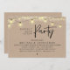Woth joyius hearts, announce and share your happily ever after in style with our modern rustic string lights, cottage brown kraft theme design "Happily ever after party" wedding elopement or reception dinner and dancing celebration invitation card. It is ideal for couples who have decided to celebrate their best day. With its sophisticated yet playful design, this invitation is sure to set the tone for an unforgettable event. The invitation card features a modern and minimalist script design theme, adding a touch of timeless elegance to your celebration. Designed by TeeshaDerrick