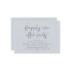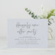 Celebrate the magical evening after “I do” with this sophisticated and romantic wedding reception dinner and dancing invitation — perfect for honouring the couple celebrating their big day. Design Highlights, Modern minimalist aesthetic with bold serif typography and flowing script, “Happily ever after party” headline sets a dreamy, timeless tone, Clean layout with ample space for all essential details (date, time, venue, RSVP info) and Crisp dark grey text on chill grey background — classic, chic, and effortlessly elegant. Perfect for Intimate rehearsal dinners, Pre-wedding celebrations with family and close friends and Couples who love modern calligraphy and understated luxury.