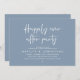 Celebrate the magical evening after “I do” with this sophisticated and romantic wedding reception dinner and dancing invitation — perfect for honoring the couple celebrating their big day. Design Highlights, Modern minimalist aesthetic with bold serif typography and flowing script, “Happily ever after party” headline sets a dreamy, timeless tone, Clean layout with ample space for all essential details (date, time, venue, RSVP info) and Crisp white text on dusty blue background — classic, chic, and effortlessly elegant. Perfect for Intimate rehearsal dinners, Pre-wedding celebrations with family and close friends and Couples who love modern calligraphy and understated luxury.
