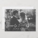 This modern yet elegant wedding elopement announcement features a script greeting that says "Happily Ever After", classic typography, and a "full-bleed" horizontal photo. All colors in this design are customizable, even the script. You can further customize this design by adding another photo and/or additional text to the back side.