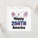 Invite your guests to a historic celebration. This bold America 250 party invitation features clean typography, a patriotic stars-and-stripes 250th, and festive fireworks. Perfect for July 4th 2026 BBQs, family reunions, block parties, and community events.