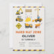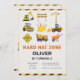 Hard hat zone construction site birthday party invitations featuring a bulldozer and an excavator.