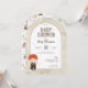 Celebre a chegada mágica de um novo membro com este adorável convite de chá de bebê do Harry Potter com Ron Weasley. O design apresenta uma ilustração fofa de Ron com suas vestes de Hogwarts segurando sua varinha, cercado por estrelas coloridas. O texto do convite é artisticamente organizado com fontes divertidas e elegantes, personalizáveis com o nome da homenageada, data, hora, local, detalhes de RSVP e lista de presentes. Um formato arqueado único dá um toque de livro de histórias, enquanto o verso exibe um padrão encantador de ícones do mundo mágico, incluindo caldeirões, poções, livros de feitiços e criaturas mágicas. Perfeito para qualquer fã de Harry Potter, este convite prepara o cenário para uma celebração encantadora.