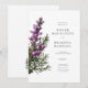 Uma ilustração digital original de flores de urze roxa no estilo de esboços botânicos vintage é destaque neste convite.