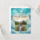 An elegant funeral memorial celebration of life Invitation with 1 special photo, serene clouds, angels and a little angel on the back.