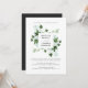 Um convite de casamento botânico maravilhosamente elegante com um design de tema floral orgânico em verde-aquarela verde e cinza clássica com sotaque de caligrafia. Seus nomes aparecem em letras de cinza, enquadrados por folhas de marijuana, morango de neve e folhagem de eucalipto em um fundo branco nítido. Uma carta inversa em uma dramática e elegante cinza escura. Escolha esta design para casamentos no inverno elegantes, núpcias de outono ou outono ou casamentos noturnos no verão. Perfeito para comemoração em qualquer época do ano Corresponder itens disponíveis em nossa coleção Hedera. Para obter ajuda ou solicitação personalizada, entre em contato conosco através da loja ou escreva em citronelladesign@gmail.com