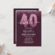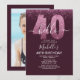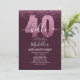Hello 40! Invite your friends and family to celebrate the 40th birthday with this modern design. The design features a black background, the numbers thirty in faux pink glitter, with an elegant pink glitter background, elegant calligraphy script, a modern birthday template that's easy to personalize, and the option to add a photo to the reverse. Don't think about it and get yours now.