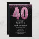 Hello 40! Invite your friends and family to celebrate the 40th birthday with this modern design. The design features a black background, the numbers thirty in faux pink glitter, with an elegant pink glitter background, elegant calligraphy script, a modern birthday template that's easy to personalize, and the option to add a photo to the reverse. Don't think about it and get yours now.