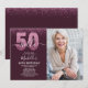 Hello 50! Invite your friends and family to celebrate the 50th birthday with this modern design. The design features a black background, the numbers thirty in faux pink glitter, with an elegant pink glitter background, elegant calligraphy script, a modern birthday template that's easy to personalize, and the option to add a photo to the reverse. Don't think about it and get yours now.