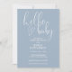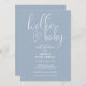 Convite Hello Baby Elegant Script Dusty Blue Baby Shower