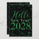 Convite Hello New Year! New Year's Eve Green Black Sparkle