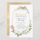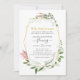 Convite de aniversário de casamento de 50 anos com folhagem florestal featuring ervas silvestres, samambaias, folhas e eucalipto com moldura geométrica dourada personalizável para os detalhes do seu evento.
