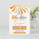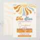 Celebrate the arrival of that little ray of sunshine with our fun retro-themed baby shower design for a boy or girl featuring the phrase "HERE COMES THE SON" in groovy retro typography in orange, red, and green. For complementary products for your baby shower, please check out our collection of this cute retro design.