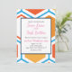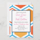 Convite Hexágono em laranja, azul e branco