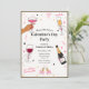 A trendy Galentine's Day invitation with gold frame border featuring the phrase "hey babe!" alongside illustrated cocktail glasses, champagne bottle, hearts, and ribbons. Perfect for a fun and stylish celebration with your besties. The playful yet sophisticated design includes plenty of space to customize with your party information for an unforgettable Galentine gathering.