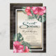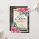 hibisco de flores tropicais, e armação em uma textura de madeira escura.