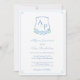 Este design de convite para casamento inteligente, azul e branco, apresenta as minhas ilustrações originais em aquarela (as hipórdias / folhas e a forma da crista). A crista do monograma está rodeada por uma borda de "chave grega" e no reverso está um retrocedor do padrão de "chave grega". Você pode alterar a cor de contraste da Chave Grega na frente e no verso (mostrada aqui como um azul claro) para qualquer cor que você quiser digitando a ferramenta design (abaixo da área de personalização do texto, clique para "personalizar mais") e, em seguida, alterando a cor de fundo em cada camada.
