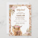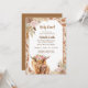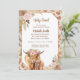 Convite para Chá de fraldas de Impressão de vaca plana, cor-de-rosa. Design apresenta um gráfico fofo de uma mama e vaca bebê com a coroa de flores rosa e o fundo impressão de vaca marrom. Doce design para garotas.
