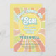 Aí vem o novo filho! O bebê Hippie Boho convida para um bebê ser. Possui um grande sol amarelo com raios para cores pastéis e fontes de groovy personalizadas. Para fazer mais mudanças, vá para Personalizar este modelo. Na parte inferior você verá "Quer personalizar este design ainda mais? Clique em EDIT usando a ferramenta Design.