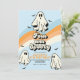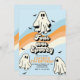 Quatro Sempre Spooky! Convite de aniversário de Dia das Bruxas Ghost Ghost Retro em azul e laranja. Uma festa de aniversário manchada, convidada com fantasmas e morcegos.