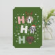 Ótima ilustração das faces de Great Dane na palavra "Ho Ho" decorada em traje de férias. Perfeito para amantes de animais de estimação durante o feriado.