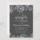 Winter Onederland Pink, Blue, Silver Glitter Snowflakes primeiro convite de aniversário.