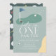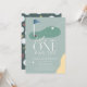 This retro modern "hole in one" boy's 1st birthday golf party/par-tee invitation features a blue flag and golf balls with a fairway and bunker in a golf course. The reverse side features a dark green background with a golf ball and tee pattern. Personalize it for your needs. You can find matching products at my store.