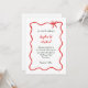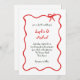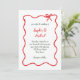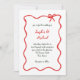 Este convite de casamento chic e elegante apresenta uma mão vermelha desenhada, um quadro ondulado ilustrado com um arco, e um guião manuscrito na moda vermelho e verde em um fundo branco. Perfeito para um casamento ao estilo parisiense ou francês durante a época de Natal.