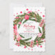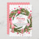 Holiday Brunch Elegante Christmas Floral Wreath Invances apresenta uma coroa floral de na moda com presentes de Natal, canetas doces, decorações e sinos em verde e rosa sobre fundo branco. Dentro a coroa adicione suas informações personalizadas para seus Convites de festas de Natal. Basta editar o texto nas caixas de texto fornecidas. Elaborado por ©Evco Holidays www.zazzle.com/store/evcoholidays