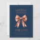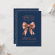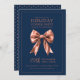 Convite Holiday Dinner Party Rose Gold Satin Bow Navy Blue