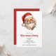 Um convite de Natal com uma ilustração alegre de um Papai Noel estilo vintage com bochechas rosadas vermelhas vestindo seu clássico chapéu de Papai Noel vermelho e seu grande urso branco. Um sorriso de sprig adiciona ao espírito festivo de feriado desta design.
