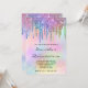 Um convite bonito para a fabulosa festa de festa de aniversário quincinera. O falso brilho multicolorido do arco-íris e as gotas de folhas criadas com gráficos de arte digitais contra uma massa arco-íris com decoração holográfica brilhante. Personalize o estilo de fonte, o tamanho, o espaçamento e a cor elegantes, conforme necessário. Convites de festa de aniversário personalizáveis. Concursos de gema e chic.