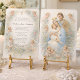 Holy Family, Marian devotion, sacred Catholic artwork featuring the Blessed Virgin Mary tenderly holding the Child Jesus, with Saint Joseph standing protectively behind them, surrounded by a soft vintage watercolor floral arrangement and delicate cherub angels. This peaceful and reverent design reflects the beauty of traditional holy cards and is perfect for baptisms, First Holy Communion, weddings, nursery décor, or devotional keepsakes. The gentle pastel tones and classical composition invite prayer, reflection, and trust in the loving care of the Holy Family.