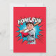 Uma ilustração vibrante dos quadrinhos de pop de arte mostrando um jovem jogador de beisebol pegou médio-swing. O menino veste um uniforme de cinza nítido, acentuado com riscas vermelhas arrojadas, seu cabelo castanho elegante espiando-se de baixo de um boné branco brilhante enquanto ele irradiava um sorriso quente e genuíno. Ele é posicionado dinamicamente contra um pano de fundo de pontos clássicos de meia-tona, formas geométricas estilizadas em cores primárias, e o texto "HOME RUN" gravado em uma fonte em quadrinhos retrô acima de sua cabeça. Uma paisagem urbana estilizada com céu amarelo vibrante e perspectiva exagerada forma o pano de fundo energético, iluminada por uma luz suave e difusa que destaca a energia e ação lúdicas da cena.