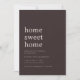 Bem-vindos amigos e família para comemorar seus novos começos com um simples, mas elegante convite de festas de desmoronamento. O convite apresenta um rico fundo roxo escuro, evocando o espírito acolhedor e convidativo da época. No lado esquerdo, em uma fonte bege suave, a manchete "Home Sweet Home" se destaca, convidando calorosamente os convidados a se juntar às festividades. Abaixo do título, os detalhes da parte são claramente apresentados, garantindo que todas as informações essenciais sejam facilmente acessíveis. Este belo convite capta a essência do outono e a alegria de uma nova casa, dando o tom para uma celebração memorável e emocionante.