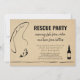 "Festa de resgate. Resgatando peixe de água e cerveja de garrafas." Um convite para adultos engraçado para uma festa de aniversário de pesca, uma festa de aposentadoria ou uma despedida de solteiro.