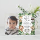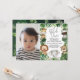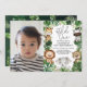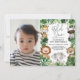 Celebre o primeiro aniversario do seu filho com este convite de festas de safari caprichoso. O design apresenta um grupo de adoráveis animais da selva e um exuberante verde aquícola tropical