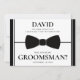 Convide seu padrinho de casamento com estilo com este cartão de proposta elegante e personalizável. Apresentando um sofisticado design com sotaque preto e uma ilustração formal de gravata arco, este cartão é perfeito para pedir aos seus amigos mais próximos que fiquem do seu lado no dia do seu casamento. Personalize-o com o nome do destinatário e uma mensagem sincera. Você também pode adicionar uma data personalizada para esse toque pessoal extra — uma forma na moda e moderna de pedir aos seus padrinhos de casamento que façam parte do seu dia especial.