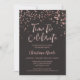 Este convite de festa “Hora de Celebrar” com confete dourado rosa falso sobre cinza escuro é perfeito para uma celebração moderna e sofisticada. Este convite é ideal para uma celebração de aposentadoria, aniversário de casamento, festa de noivado, despedida de solteira, festa de aniversário, jantar de despedida ou qualquer outro evento.