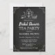 O presente convite tem um fundo de quadro de reflexão e uma letra de cor com elementos desenhados à mão. Celebre a noiva a ser com uma festa de chá no seu café ou sala de chá favoritos.