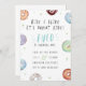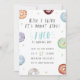Um convite de aniversário fofo e caprichoso com tema de donut, perfeito para uma celebração de brunch!
