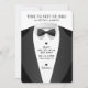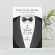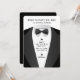 Convite simples e moderno para padrinho de casamento, apresentando um smoking preto e branco com o texto, "Hora de se aprontar, irmão", "Estou me casando", o nome do padrinho, "Você será meu padrinho?", a data e local do casamento e o nome do noivo. Se precisar de ajuda para personalizar isso, por favor me envie uma mensagem usando o botão abaixo e ficarei feliz em ajudar.