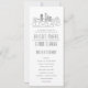 Um programa de casamento temático de horizonte deco para um casamento realizado na bela cidade de Cleveland, Ohio. Este item apresenta uma ilustração estilizada do horizonte único da cidade com seu nome embaixo. Isso é seguido pelas informações do seu dia de casamento em um estilo aberto correspondente.
